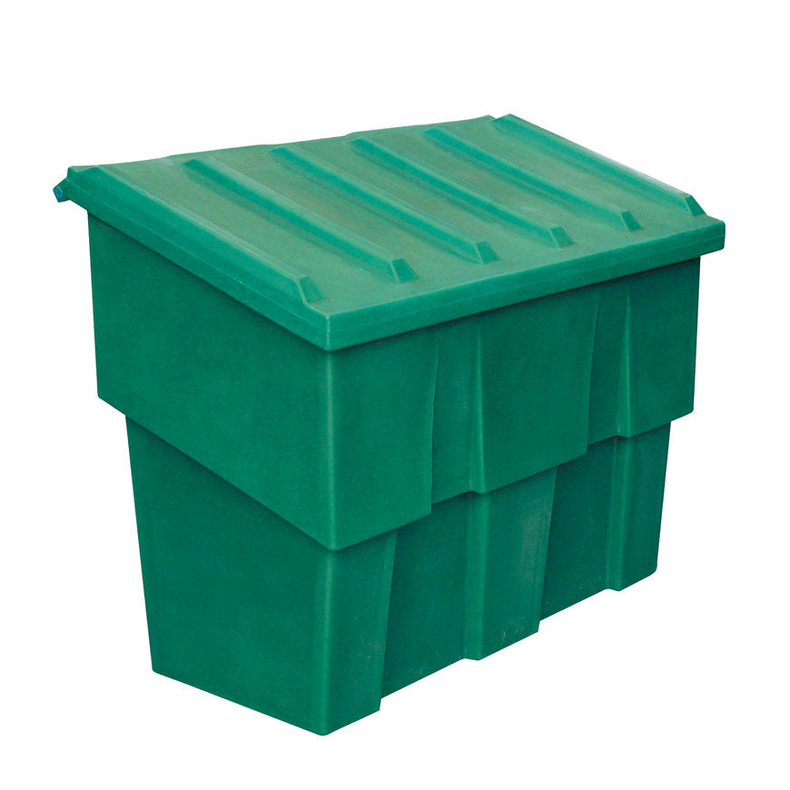 De container is gemaakt van pe, heeft een inhoud van 500 liter en is waterdicht.
