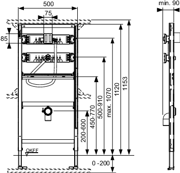 ETIM Class Voorwand-/inbouwelement urinoir met drukspoeler