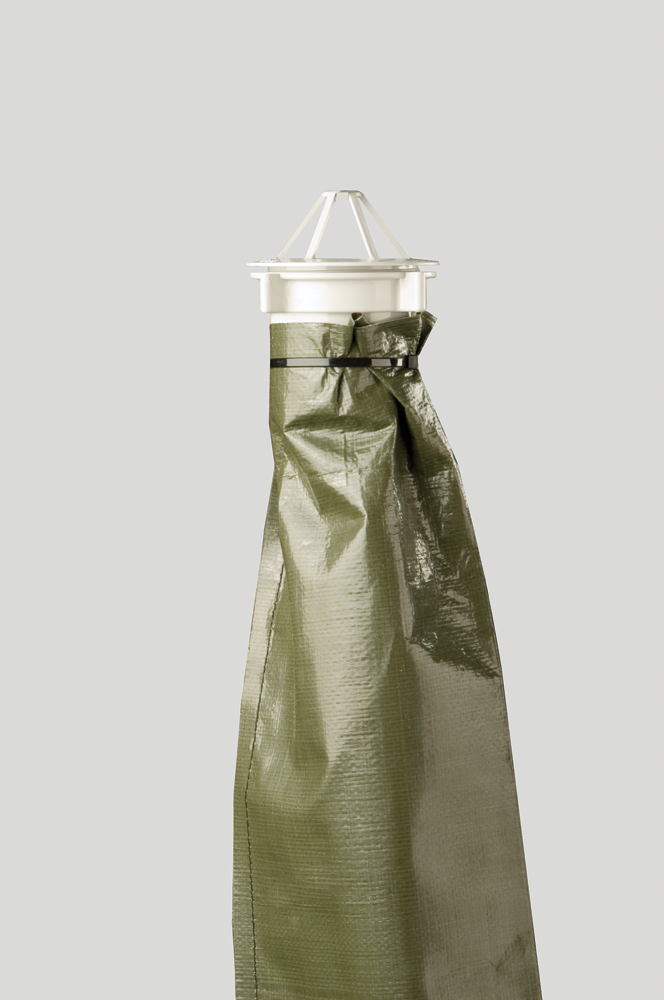 De tijdelijke hwa kan door middel van een slangklem om de gootuitloop worden bevestigd. Deze is geschikt voor gootuitlopen met een diameter van 80 tot 100 mm.