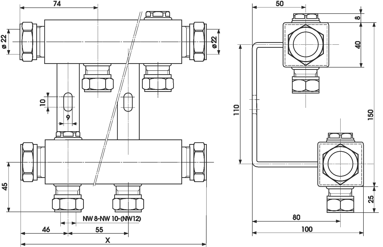 Variant TECE stalen verwarmingsverdeler, ve