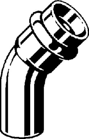 Deze bocht 45° is onderdeel van het Viega Profipress cv-, lucht- en waterleidingsysteem.